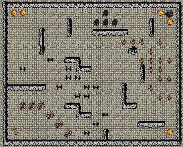 Monsters on map (level from 5 to 13): beholder, giant bat, kobold, raas, tree.