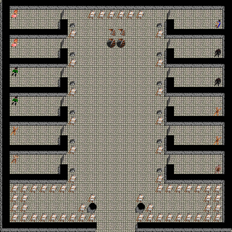 Monsters on map (level from 3 to 9): castle guard, madman, ogre, pirate, pirate lass, prisoner, raas, warrior.