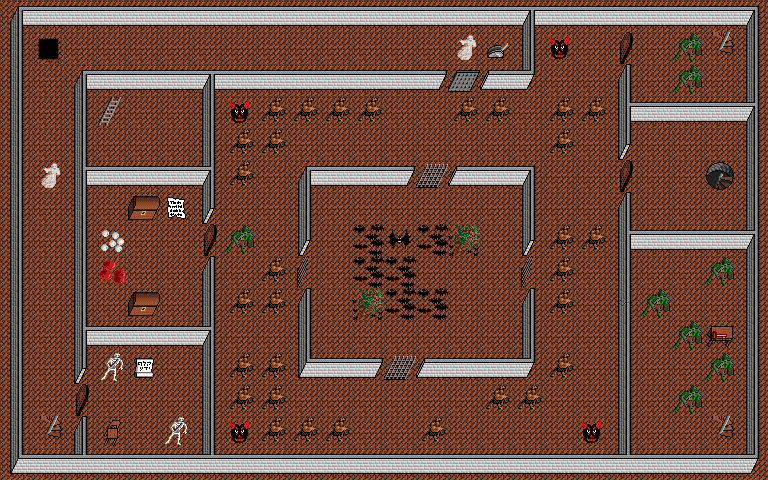 Monsters on map (level from 1 to 5): bat, ghost, giant bat, goblin, orc, skeleton.