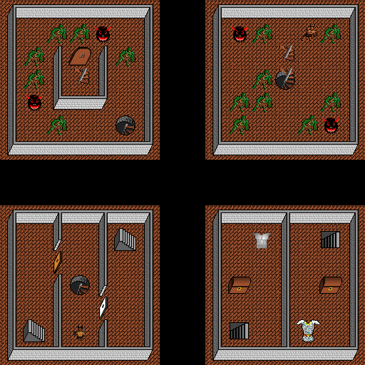 Monsters on map (level from 1 to 2): goblin, little kobold, orc.