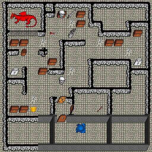 Monsters on map (level from 3 to 29): dragon, skeleton, skull.