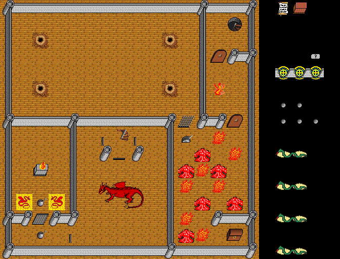 Monsters on map (level from 7 to 26): ancient red dragon, baby dragon, fire elemental, lava para-elemental, serpent dragon.