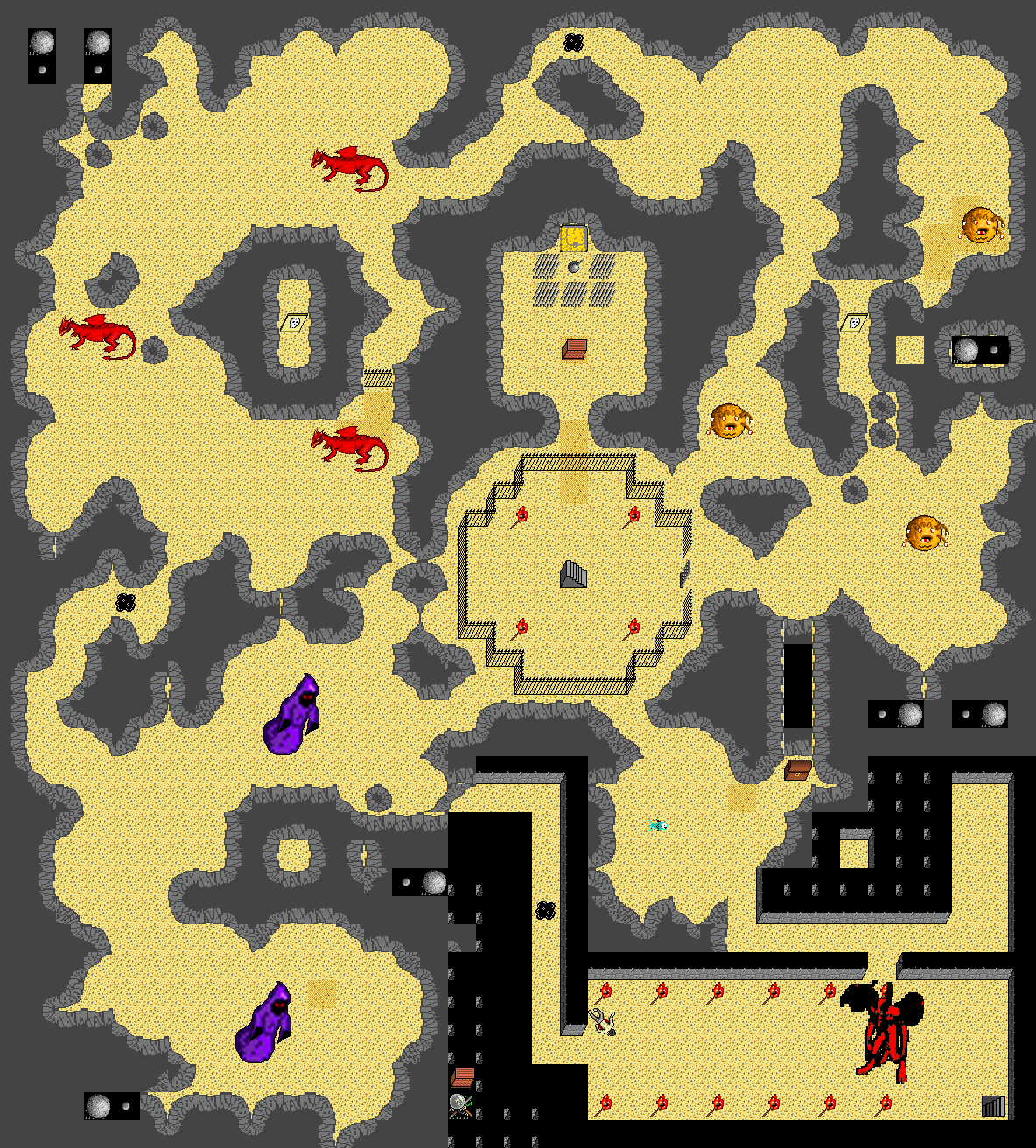 Monsters on map (level from 20 to 60): Arch Wizard, big demon, black pudding, dragon, Dread, Dreadful Dread, Mega Dragon, wizard.