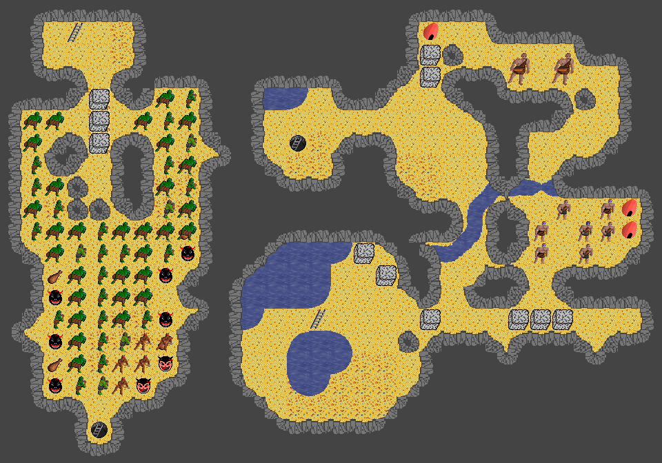 Monsters on map (level from 2 to 10): gnoll, goblin, goblin champion, hill giant, ogre, ogre chief.